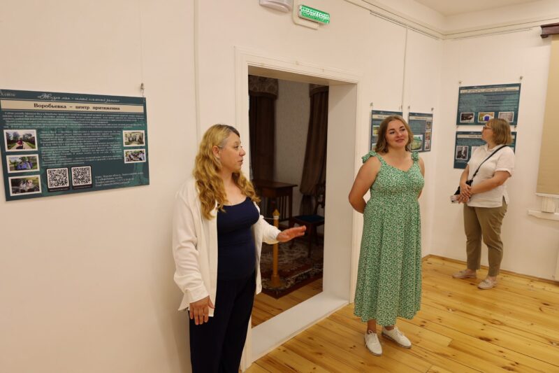 Научный сотрудник музея А.А. Фета Наталия Зинченко провела обзорную экскурсию по выставке, погружая гостей в мир поэзии и жизни Афанасия Фета.