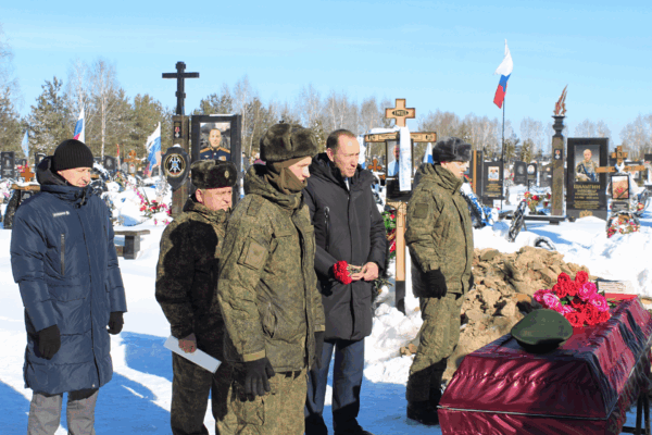На прощальной церемонии присутствовали: заместитель главы администрации Жуковского муниципального округа А.В.Фроловичев; директор Департамента физической культуры и спорта Брянской области М.В. Рудин; военный комиссар А.В.Фролов; родственники, друзья, бывшие одноклассники, знакомые… Слова сочувствия, слова прощания. Последний поклон, минута молчания… Горсть земли в морозную могилу… Залпы воинского салюта. Воинский флаг. И в пышных венках могильный холм с крестом православным…